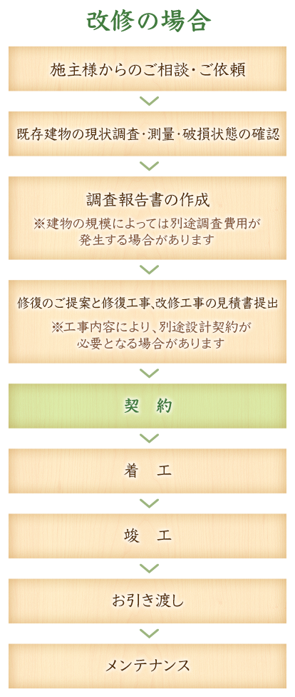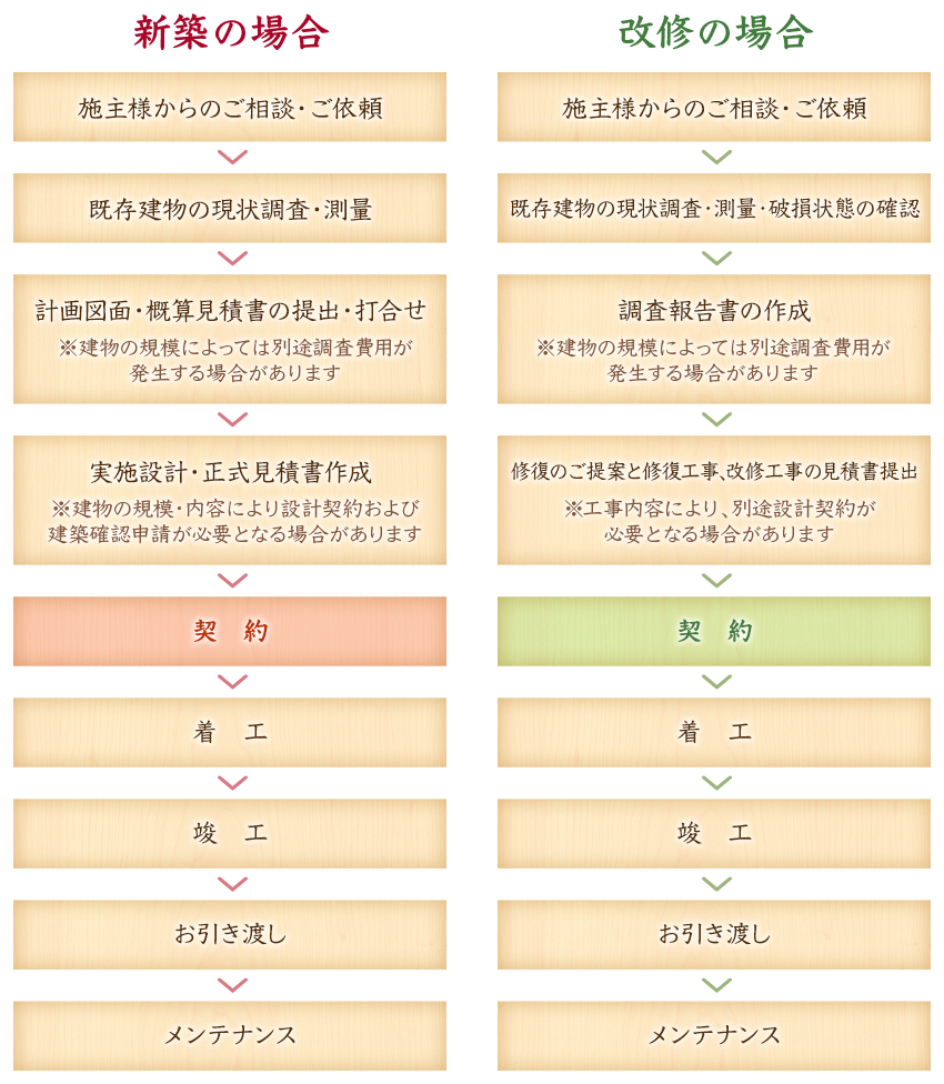設計から施工・メンテナンスまで、一貫して対応しております。古き良き建物を活かした新しい空間づくりは弊社にお任せください。